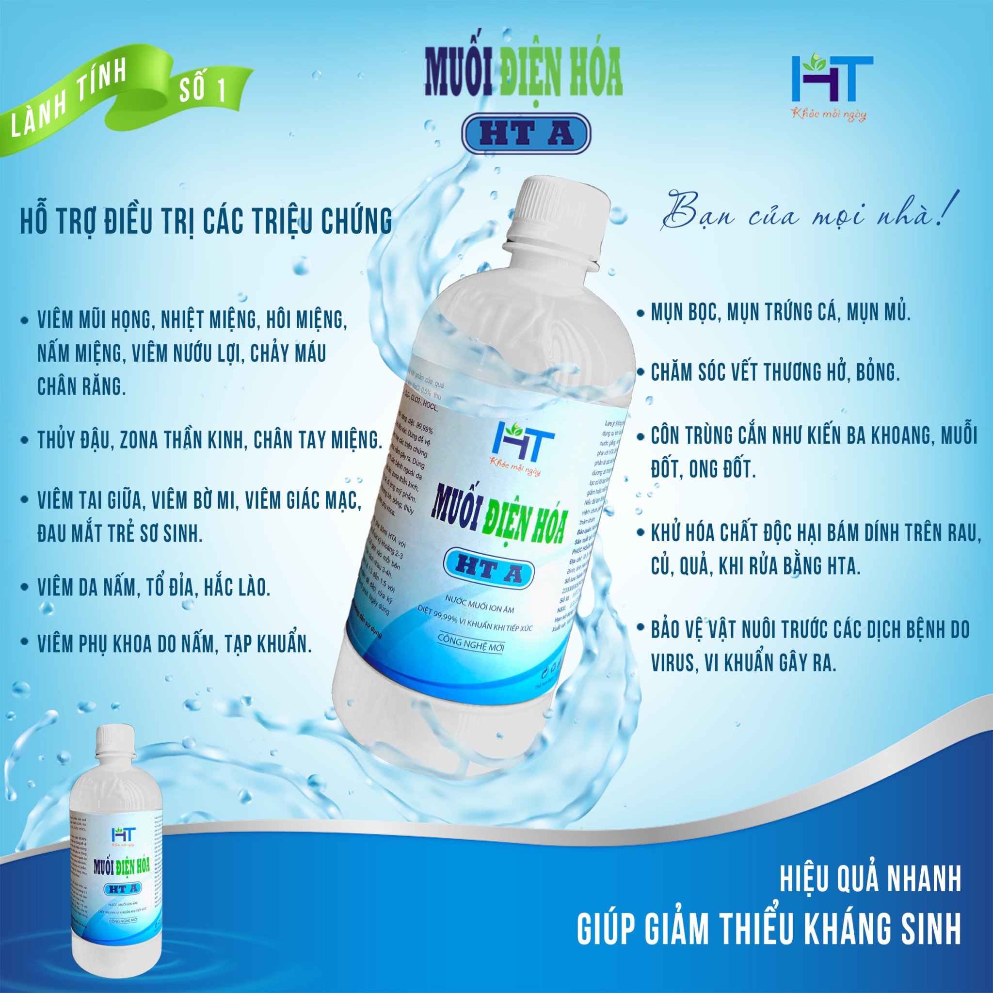 2. Dùng muối điện hoá HTA. - Cách này thì hiệu quả nhanh, đào thải nhanh và tối ưu, ngoài thải độc thì phương pháp này giúp tái tạo tế bào bị tổn thương do viêm loét đại nhanh và an toàn nhất. Những ngày đầu thải độc ngày làm từ 1-2 lần, sau 1 tháng giảm tuần 2-3 lần, duy trì đều đặn giúp cơ thể thải độc tốt từ đó cải thiện sức khoẻ tốt.